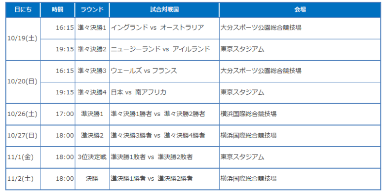 ラグビーワールドカップ決勝トーナメントの日程と会場!テレビ放送は?rag2