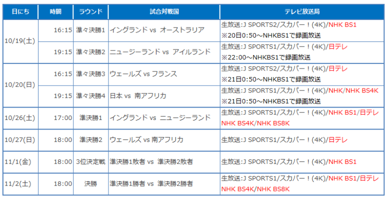 ラグビーワールドカップ決勝トーナメントの日程と会場!テレビ放送は?ragk2